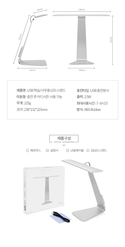 USB식 LED스탠드 충전식 각도조절